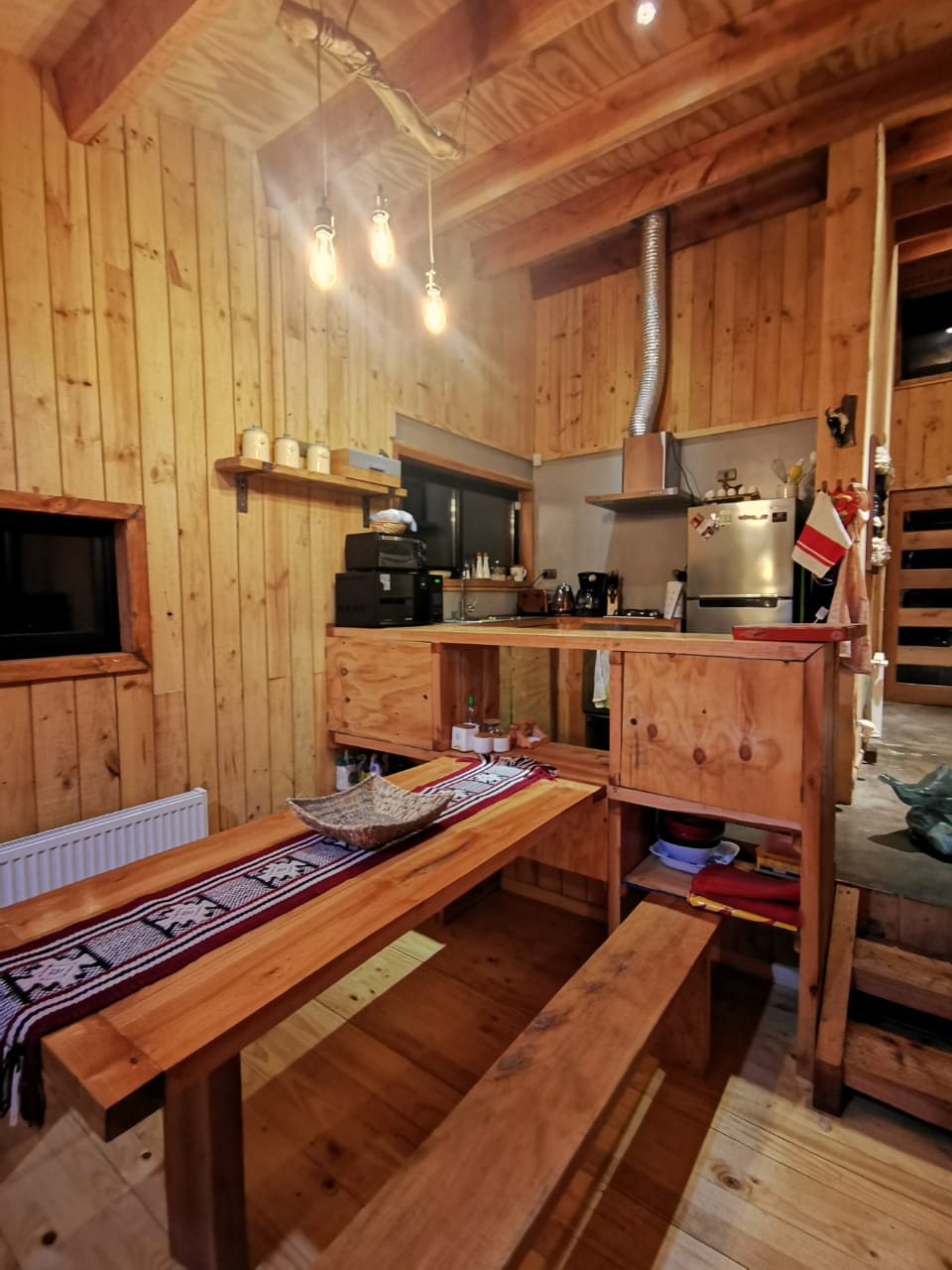 Tôi thuê một cabin đầy đủ tiện nghi cho 6 người, nó bao gồm 3 phòng ngủ, phòng đầu tiên có một giường đôi và những phòng khác với một quảng trường và một nửa cabin, mỗi phòng, một phòng khách, một phòng ăn, một nhà bếp đầy đủ tiện nghi và một phòng tắm. Hệ thống sưởi. Có bếp paraffin và máy nước nóng. Nằm trong một môi trường tự nhiên, cách một con sông, thác nước vài bước chân, cách đường 2 km, sau khi đi qua các thị trấn Pint và bao vây. Đi bộ đến suối nước nóng Chillán.