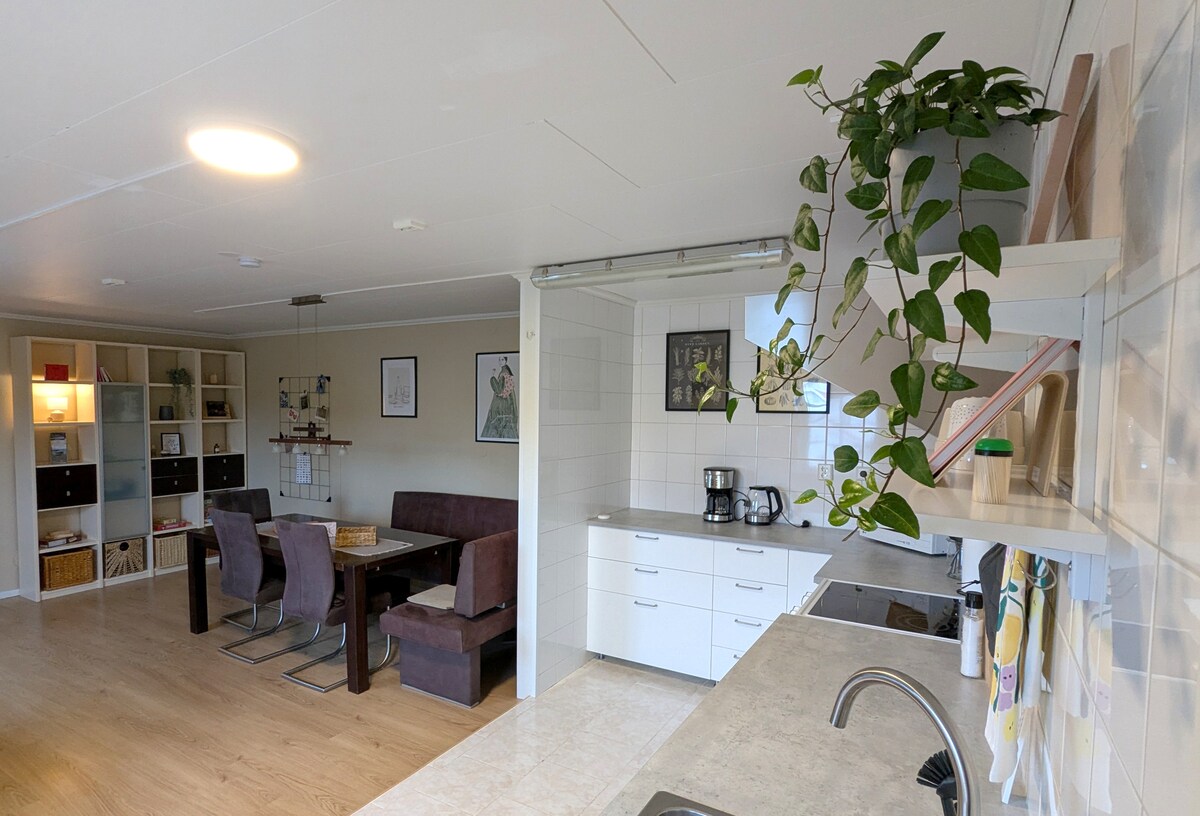 Our charming holiday home is located in a quiet area, just minutes from Hamburgsund. It accommodates up to 4 people – perfect for couples, families, or friends. The bedroom has a double bed, and there’s an area for two children's beds, accessible via a spiral staircase. Relax on the private terrace or explore the surroundings with hiking, cycling, or canoeing. A free parking space is available.