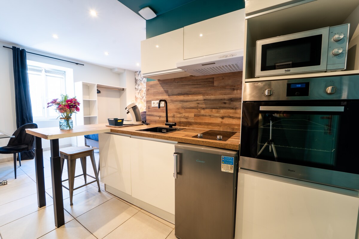 Chào mừng bạn đến với Vals-les-Bains🌿! Studio sáng sủa và thoải mái này ở tầng 2 là nơi hoàn hảo để lưu trú tại Ardèche. - Wifi nhanh và giường Emma ấm cúng - Bếp trang bị + máy giặt - Bãi đỗ xe miễn phí ở phía trước - Tự nhận phòng đơn giản và thuận tiện Gần bể tắm nước nóng, công viên nước nóng và quán cà phê, tận hưởng trải nghiệm địa phương độc đáo. 👉 Rất mong được gặp bạn!