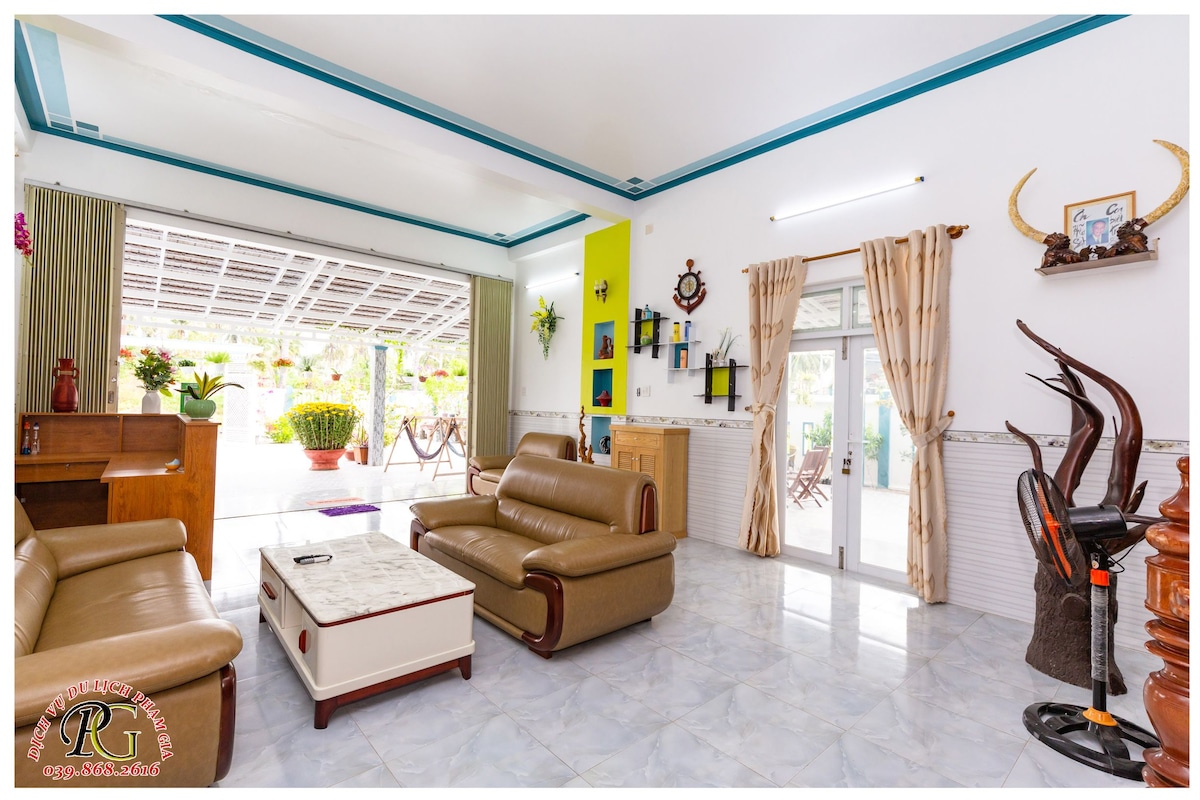 - Một ngôi nhà nghỉ dưỡng ấm cúng, đầy đủ tiện nghi được xây dựng độc lập với tổng diện tích 500m2; có không gian trong ngoài; sân vườn thoáng mát sạch đẹp; cây cảnh xanh tươi; tiếng chim thiên nhiên líu lo thích hợp vui chơi nghỉ dưỡng cho cả gia đình. - Cách bãi biển Dốc Lết (bãi cắm trại Dốc Lết) tầm 150m (5 phút đi bộ ). - Có sân vườn bàn ghế, hệ thống đèn thích hợp tổ chức tiệc BBQ hoặc ngồi uống trà trò chuyện. - Có không gian vui chơi cho trẻ nhỏ.
