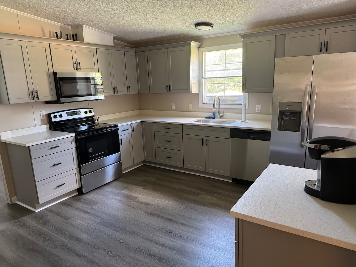 Được cải tạo với nhà bếp, sàn nhà, thiết bị mới, bồn tắm cho khách và nhiều tiện nghi khác vào năm 2021. Tận hưởng cảnh hoàng hôn tuyệt đẹp, tầm nhìn ra hồ, nước ấm để bơi lội và những đêm mát mẻ để thư giãn. Nhà bên hồ 3 phòng ngủ/2 phòng tắm có tất cả, bao gồm máy giặt và máy sấy, phòng chính rộng rãi, boong tàu có bóng râm, bến tàu nước sâu 21X16 và một chuyến đi dạo có bóng râm 75 yard đến bờ. Tận hưởng trải nghiệm câu cá, đi thuyền, thư giãn, bơi lội và xả hơi khỏi cuộc sống hàng ngày cho một kỳ nghỉ cuối tuần lãng mạn, kỳ nghỉ gia đình hoặc kỳ nghỉ yên bình.