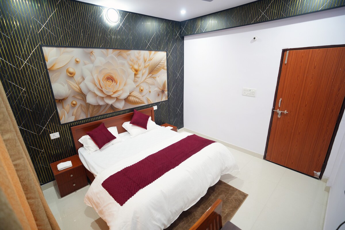 Phòng sang trọng gần Đền Kashi Vishwanath | Chỗ ở thoải mái và di sản cao cấp Được thiết kế với nội thất hiện đại và tiện nghi cao cấp, phòng có điều hòa không khí, giường ngủ sang trọng và phòng tắm được trang bị đầy đủ tiện nghi. Khách có thể tận hưởng năng lượng sôi động của các con phố chùa. Lý tưởng cho khách hành hương, cặp đôi và khách du lịch tìm kiếm cả sự tiện lợi và đẳng cấp, không gian của chúng tôi đảm bảo sự thanh thản chỉ cách các điểm thiêng vài bước chân. Đặt ngay để trải nghiệm linh hồn của Varanasi được bao bọc trong sự thoải mái, sang trọng và truyền thống.