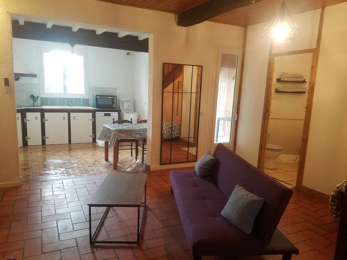 Trong căn hộ không điển hình và mới này, bạn sẽ tìm thấy tất cả các tiện nghi cần thiết cho 3 người. Được tạo ra trong một nhà máy rượu cũ, bạn sẽ ở một vị trí yên tĩnh cách Marmande 3 phút. Không gian xanh và chỗ đỗ xe miễn phí trong khuôn viên. Bao gồm một phòng khách ở tầng trệt với bếp đầy đủ tiện nghi và khay chào mừng, khu vực tiếp khách. Trên lầu, một giường trong 160 x 200 và một giường trong 90 x 190, một phòng tắm và nhà vệ sinh không tách biệt Chúng tôi cung cấp cho bạn ga trải giường, kèm theo ga trải giường và ga trải giường.