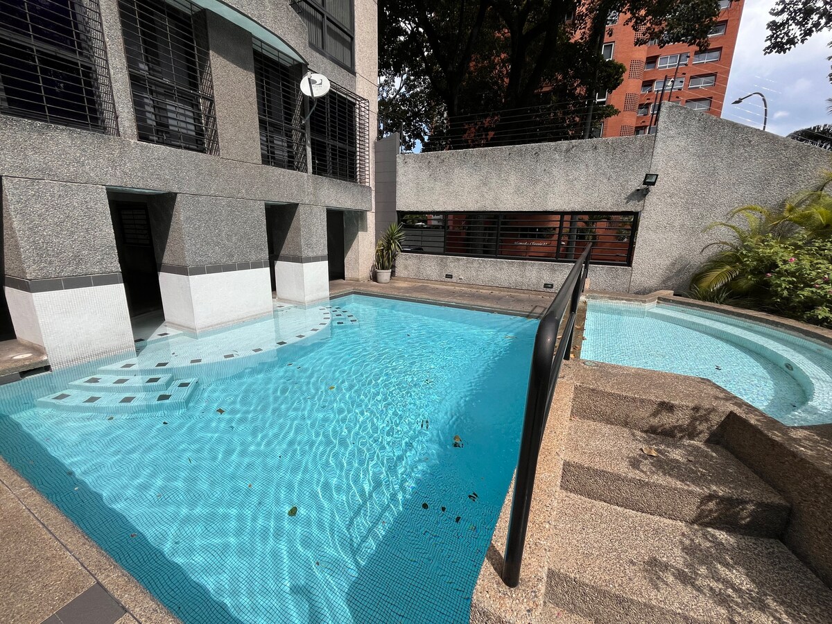 Căn hộ cao cấp 300 m2, tầng cao nhìn ra Caracas và Avila, được trang bị đầy đủ tiện nghi, sẵn sàng để di chuyển, chỉ cần bàn chải đánh răng và mang theo vali, với 3 phòng ngủ, tất cả đều có điều hòa không khí và phòng tắm, 1 phòng dịch vụ phòng tắm. Bãi đỗ xe cho 3 xe tải. Khu dân cư giống như Câu lạc bộ, với tất cả các tiện nghi, hồ bơi, lò nướng, sân tennis và an ninh 24 giờ.