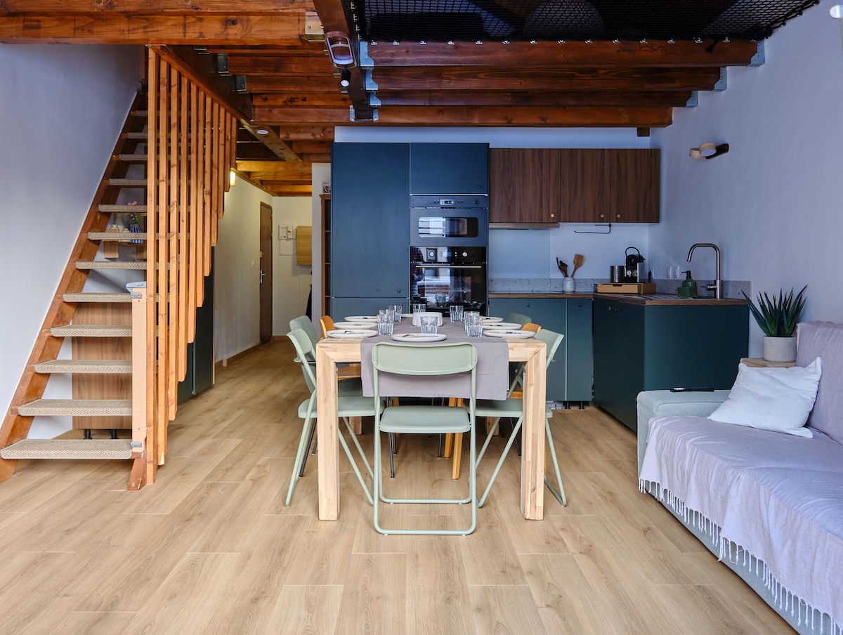 Studio nhỏ quyến rũ rộng 20 m2, nằm dưới chân sườn (50 mét) và các cửa hàng có chỗ đỗ xe miễn phí. Nó bao gồm: - phòng khách có TV - một sân thượng nhỏ lơ lửng trong khung cảnh màu xanh lá cây - một góc núi khép kín với giường tầng và tủ quần áo nhỏ - phòng tắm rộng rãi với buồng tắm đứng và bồn cầu - một không gian nhỏ để nấu ăn, bao gồm bồn rửa, lò vi sóng/lò nướng, tủ lạnh nhỏ và bếp điện có thể tháo rời.