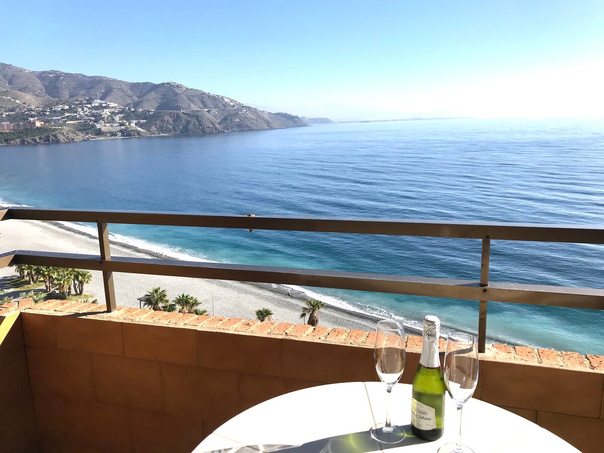 Căn penthouse hướng biển hàng đầu độc đáo với sân thượng riêng và tầm nhìn tuyệt vời ra Biển Địa Trung Hải! Căn hộ này nằm ở thị trấn Almuñécar xinh đẹp ở Andalusien và gần cả Malaga và Granada trong khu vực " Costa Tropical ". Căn hộ được trang bị đầy đủ mọi thứ bạn cần cho một kỳ nghỉ đáng yêu. Thức dậy và đi ngủ với âm thanh của sóng biển🙏🏻 NRA ESFCTU0000180160001411470000000000000000VUT/GR/055147