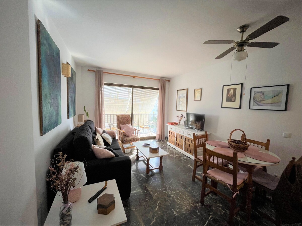 Căn hộ đẹp bên bờ biển với tầm nhìn tuyệt vời ra Biển Địa Trung Hải, hồ bơi cộng đồng vào mùa hè, bãi đỗ xe riêng, wifi cáp quang nhanh, TV màn hình phẳng 50", điều hòa, Almuñécar, Playa de Velilla, Costa Tropical, tòa nhà Intiyan. Tất cả các dịch vụ trong khoảng cách đi bộ (siêu thị, nhà thuốc, hàng thịt, nhà hàng, cửa hàng, cửa hàng trái cây). Sân thượng rộng rãi, phòng khách - phòng ăn và nhà bếp có tầm nhìn tuyệt vời ra bãi biển và biển.