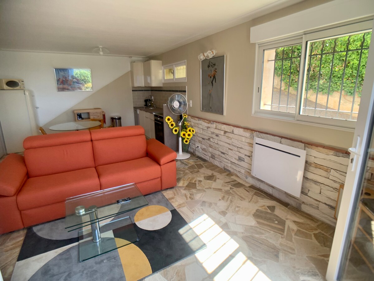 Petit STUDIO très bien équipée avec entrée et parking privé dans une grande Propriété avec piscine et jacuzzi chauffés du 10 avril au 30 octobre . La piscine extérieur et jacuzzi ainsi que le jardin sont partagés mais assez grand pour profiter chacun son espace de tranquillité . Je vis dans la bastide principale . Un Havre de Paix entouré d oliviers centenaires . A 35 minutes de l aéroport de Nice et divers villages provençaux et 14km de Cannes . Tele grand écran /abonnement Netflix