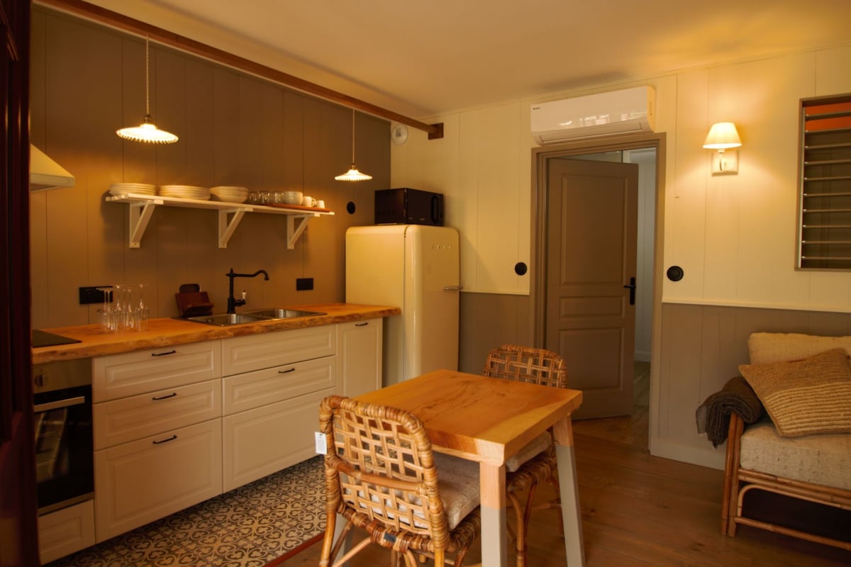 Hầm cũ được cải tạo trong một ngôi nhà với tất cả các tiện nghi: Không có phòng đối diện, đẹp (giường khách sạn 160x200) với vòi sen Ý, cửa sổ kính lớn, bếp đầy đủ tiện nghi, máy rửa chén. Đã bao gồm khăn trải giường, khăn tắm, khăn tắm, foutas bãi biển. Đó là một 'tổ ấm' thực sự, yên tĩnh, đầy nắng, các dịch vụ đẹp và vị trí đặc quyền ngay trung tâm ngôi làng. Nơi không điển hình, cặp đôi lý tưởng. Để có một kỳ nghỉ trong mơ, hãy nghỉ ngơi.