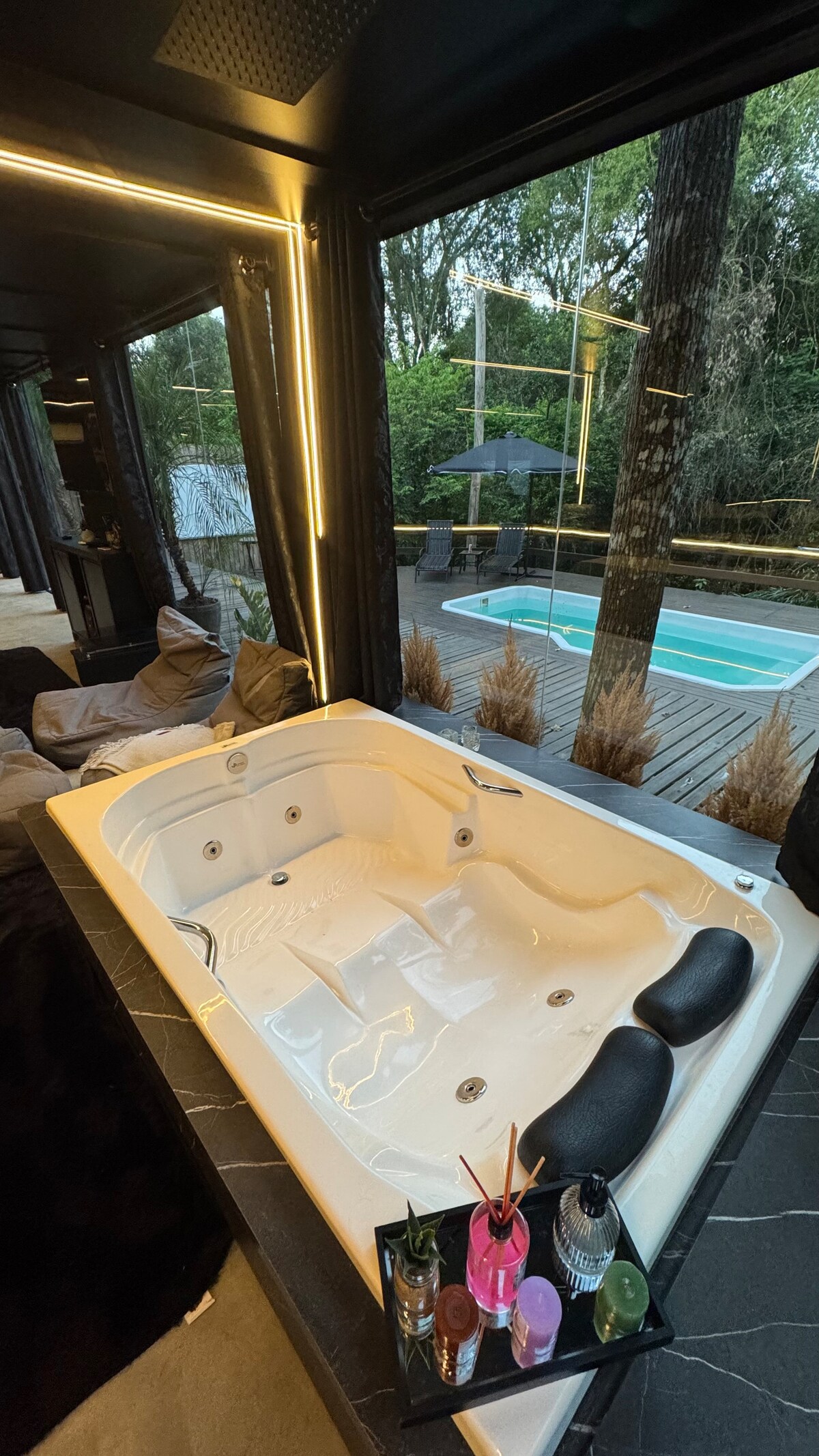 Nhà gỗ lãng mạn trong rừng có bồn tắm thủy lực và hồ bơi riêng