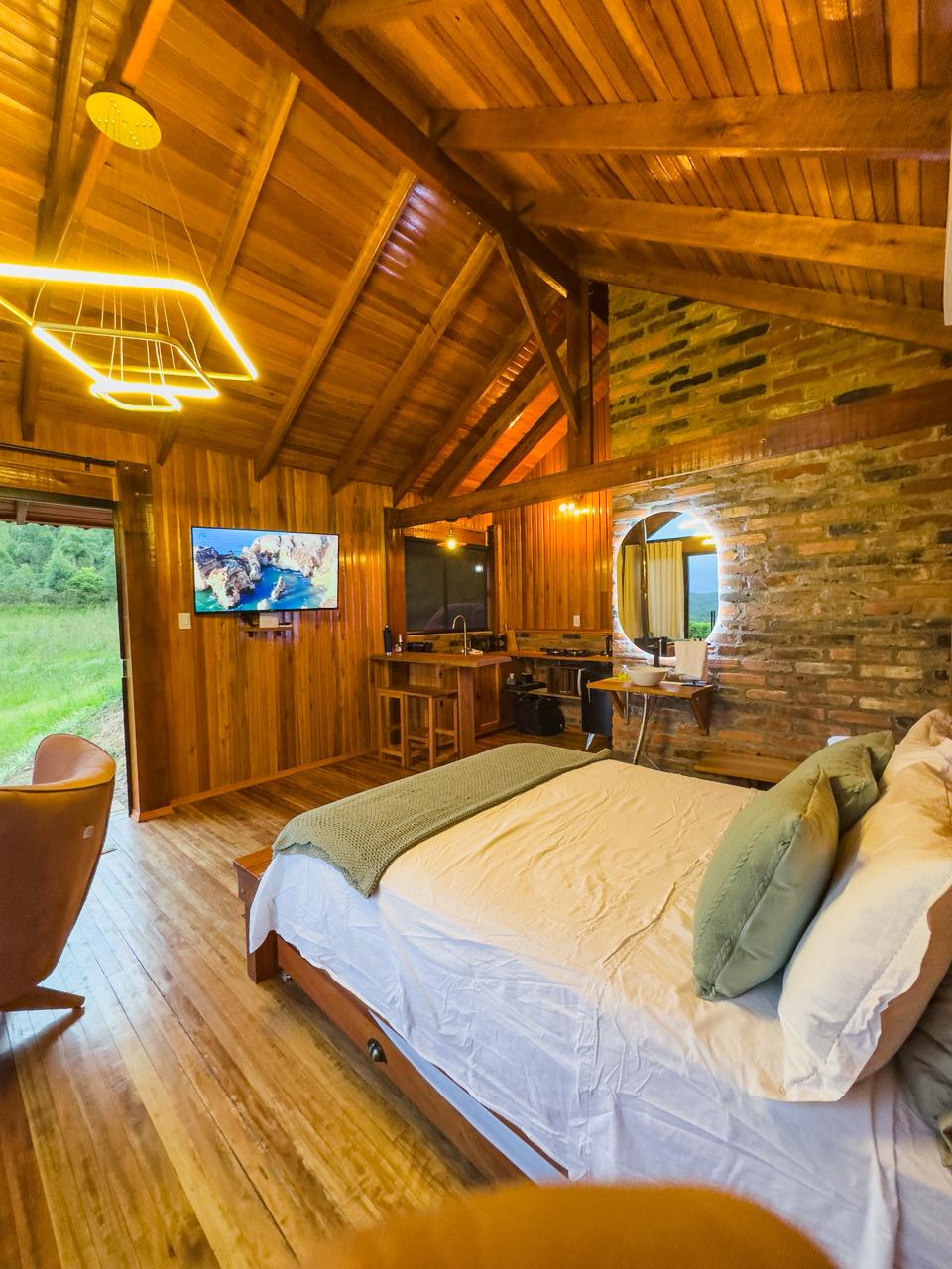 Thư giãn trong không gian yên tĩnh, bầu trời xanh, đầy phong cách này. Chalé São Pedro là một nơi dễ thương, ấm cúng, có lò sưởi ở góc phòng khách lớn, nhà bếp tích hợp và một hòn đảo bằng gỗ phá hủy với ghế đẩu. Nó có 2 phòng ngủ, cả hai đều có 2 cửa sổ, được bao quanh bởi rất xanh, tầm nhìn ra thành phố ở hậu cảnh và thảm thực vật bản địa. Đó là một công trình hỗn hợp, gần như tất cả đều là gỗ đẹp. Ban công phía trước và bên cạnh với tiệc nướng có tầm nhìn tuyệt đẹp cho những ai thích gần gũi với thiên nhiên của pampa.