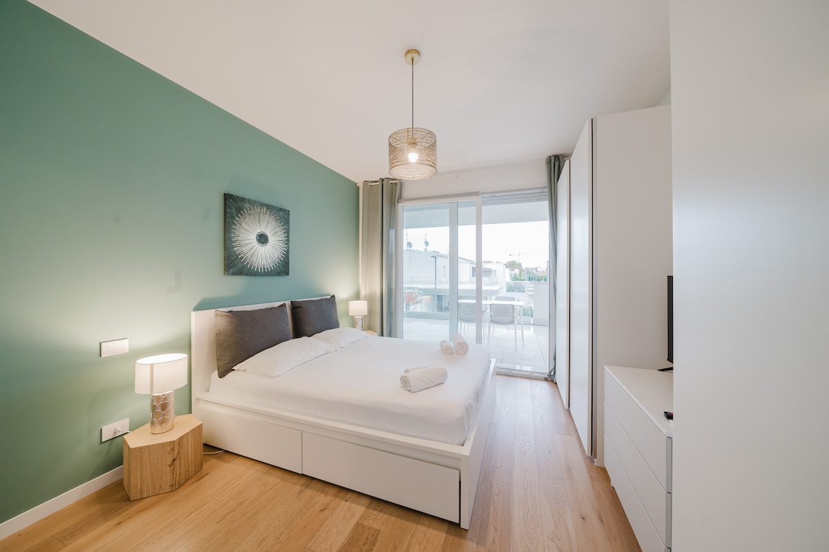 Elegante e spazioso appartamento con due camere da letto e splendida terrazza abitabile. Inserito in un contesto tranquillo con piscina condominiale, immobile offre ambienti curati e massima comodità. A pochi passi dalla stazione ferroviaria, dal centro storico e dalle spiagge. La posizione è ideale per la sua praticità. Parcheggio gratuito accanto al condominio. Ideale per famiglie, coppie e amici, sia per chi arriva in auto che per chi si muove a piedi.