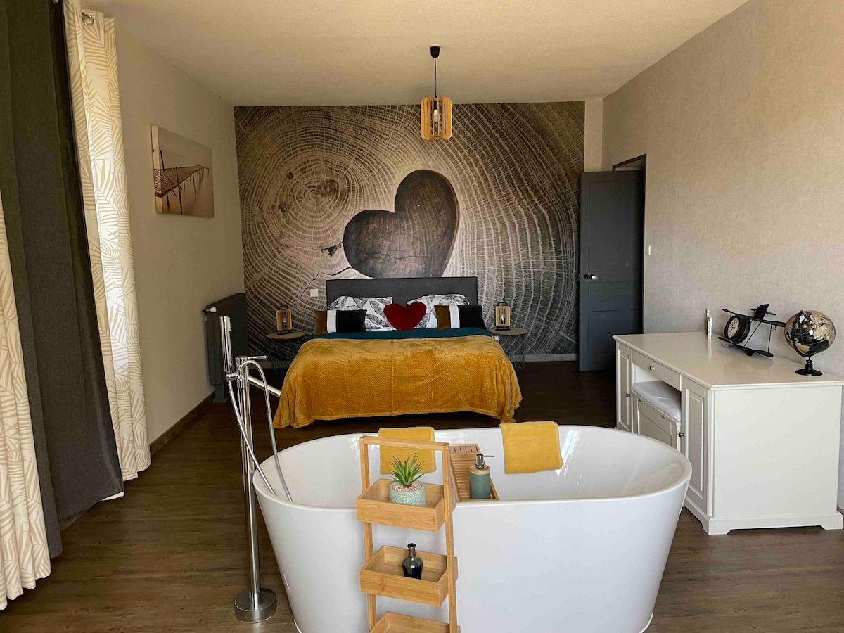 Những người yêu thiên nhiên và đang tìm kiếm một kỳ nghỉ thư giãn? Hãy đến và khám phá nhà gỗ chalet của chúng tôi nép mình giữa một khung cảnh tuyệt đẹp. Một ngôi nhà thoải mái với các tiện nghi chăm sóc sức khỏe. Căn hộ này được trang bị đầy đủ tiện nghi bên trong để mang đến cho bạn một khung cảnh ấm áp và thoải mái (phòng xông hơi khô, phòng tắm kiểu Bắc Âu. bên ngoài, lưới lửng...)