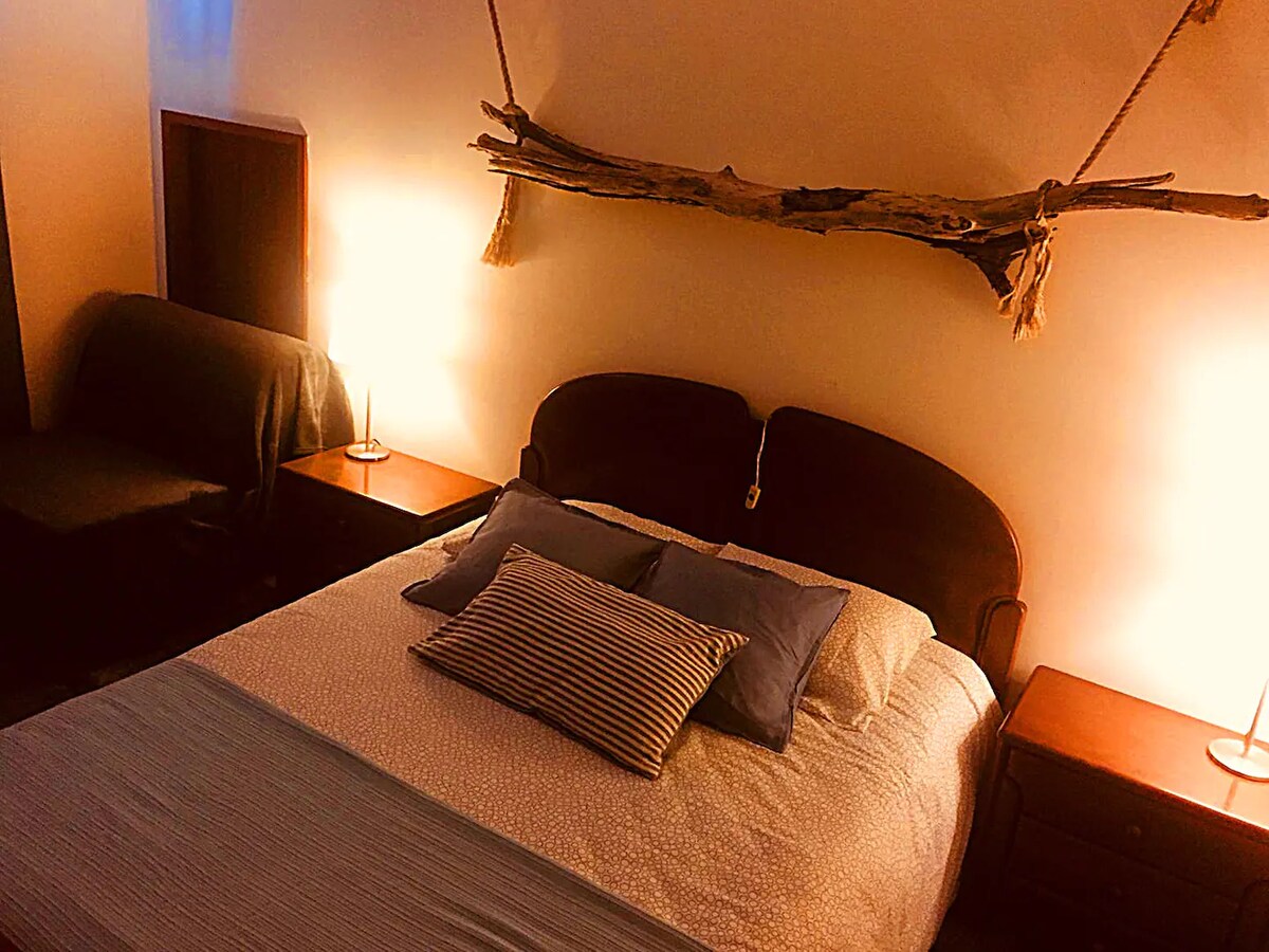 Căn hộ là một phần của ngôi nhà nhưng hoàn toàn độc lập với ngôi nhà. Suite có giường đôi và gác lửng với giường đôi; phòng tắm có vòi sen và cũng hỗ trợ các bữa ăn nhanh với ấm đun nước và dụng cụ quét ma thuật bằng lò vi sóng cần thiết để tận hưởng sự riêng tư của phòng. Được trang trí theo phong cách mộc mạc nhưng đơn giản, nó bị cô lập ở mức độ nhiệt và âm thanh. Không gian chung của ngôi nhà có dịch vụ giặt ủi và nhà bếp chung cho dịch vụ của khách. Họ có thể tận hưởng các khu vực cây xanh và hồ bơi.