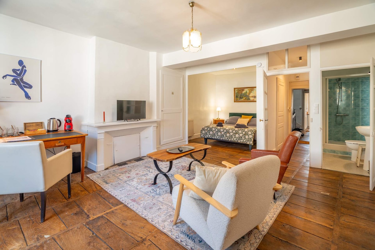 Chuyến công tác? Dừng một đêm trên một hành trình dài? Du lịch? Đoàn tụ gia đình? Đám cưới hay sự kiện khác? Ở trung tâm của ngôi làng Bellac quyến rũ, chúng tôi mời bạn ở tại một trong 4 phòng suite rộng rãi của chúng tôi (+30m2). Ở tầng 1 của một tòa nhà cũ được cải tạo, bạn sẽ được tận hưởng sự thoải mái của một căn hộ độc lập (phòng ngủ, phòng tắm lớn, văn phòng, TV) với tính năng tự nhận phòng (hộp chìa khóa). Không có gì giống như có một kỳ nghỉ thú vị!