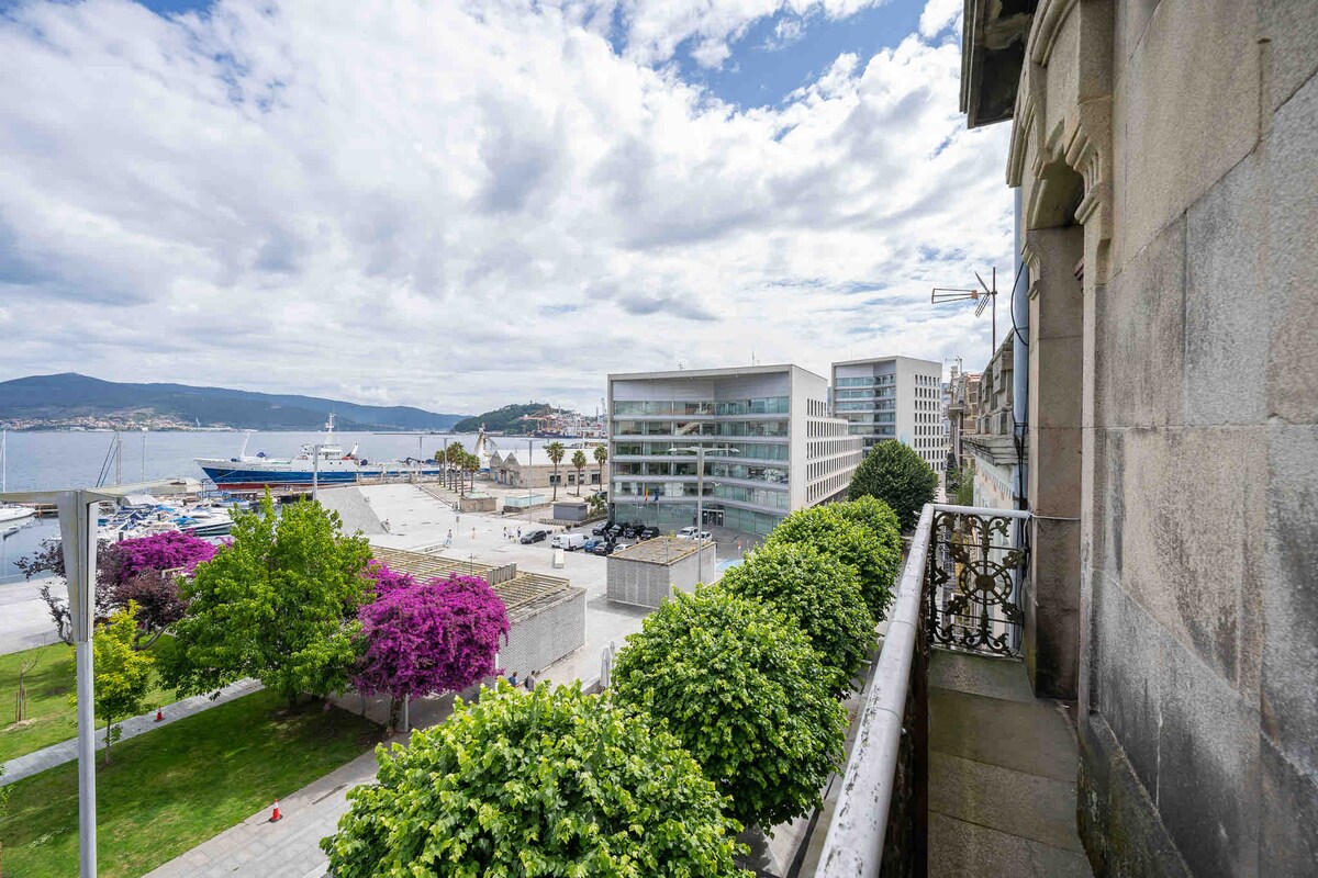 Vườn, hải lý. Tối đa 12 người, 4 phòng đôi và một khu vực riêng biệt. Ánh sáng tự nhiên cho công việc. Cập nhật, trần nhà cao, trà thông, cửa sổ lớn, khuôn đúc, lò sưởi Pháp NHƯNG không HOẠT ĐỘNG. Bếp giao tiếp với phòng khách và ban công của mặt tiền chính với TẦM NHÌN TUYỆT VỜI, tầng 3 KHÔNG CÓ THANG MÁY. Marina, cửa hàng và ẩm thực ngon nhất ở Nam Galicia. Boardwalk, sân thượng, Trung tâm lịch sử, lối ra đến Quần đảo Cíes. Khu vực len, đi bộ lý tưởng.