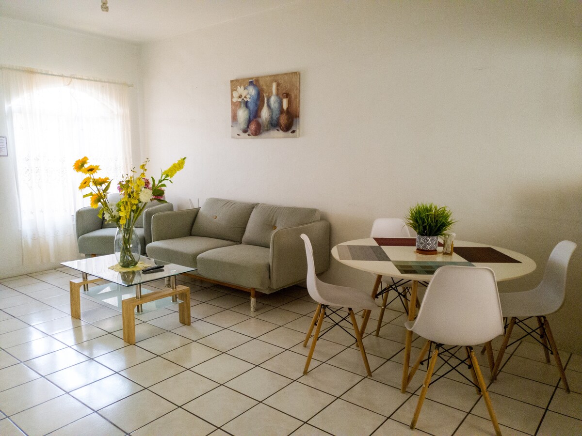 Chào mừng bạn đến với tổ ấm của mình. Không gian ấm cúng và yên tĩnh này là nơi hoàn hảo để nghỉ ngơi, thư giãn và tận hưởng một kỳ nghỉ thoải mái. Nằm trong một khu vực yên tĩnh và an toàn, nó giúp bạn dễ dàng đến các nhà hàng và điểm tham quan địa phương. Nó nằm cách Comala (một thị trấn kỳ diệu) chỉ 10 phút, cách các trung tâm mua sắm và trung tâm thành phố 15 phút. Có một ki-ốt bên trong khu phức hợp dân cư và một cửa hàng tiện lợi chỉ cách chỗ ở 3 dãy nhà. - Chúng tôi cho phép xuất hóa đơn.