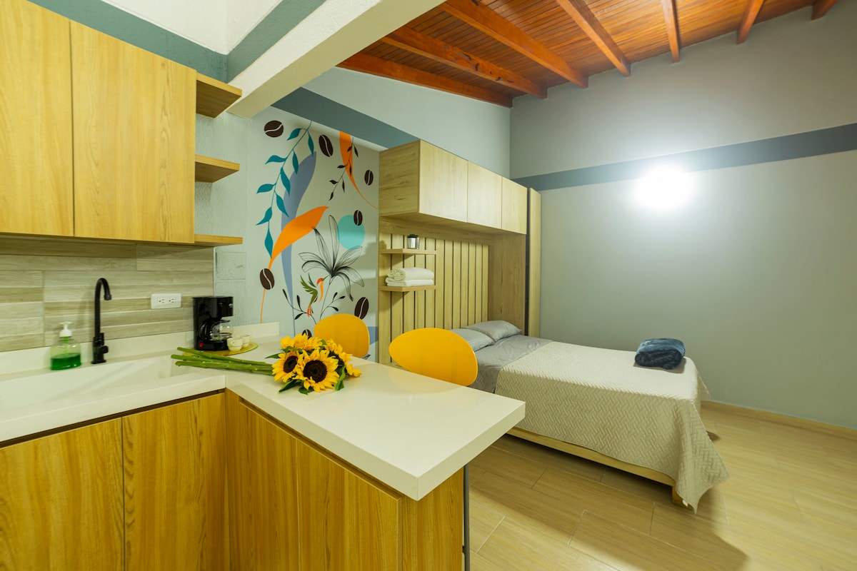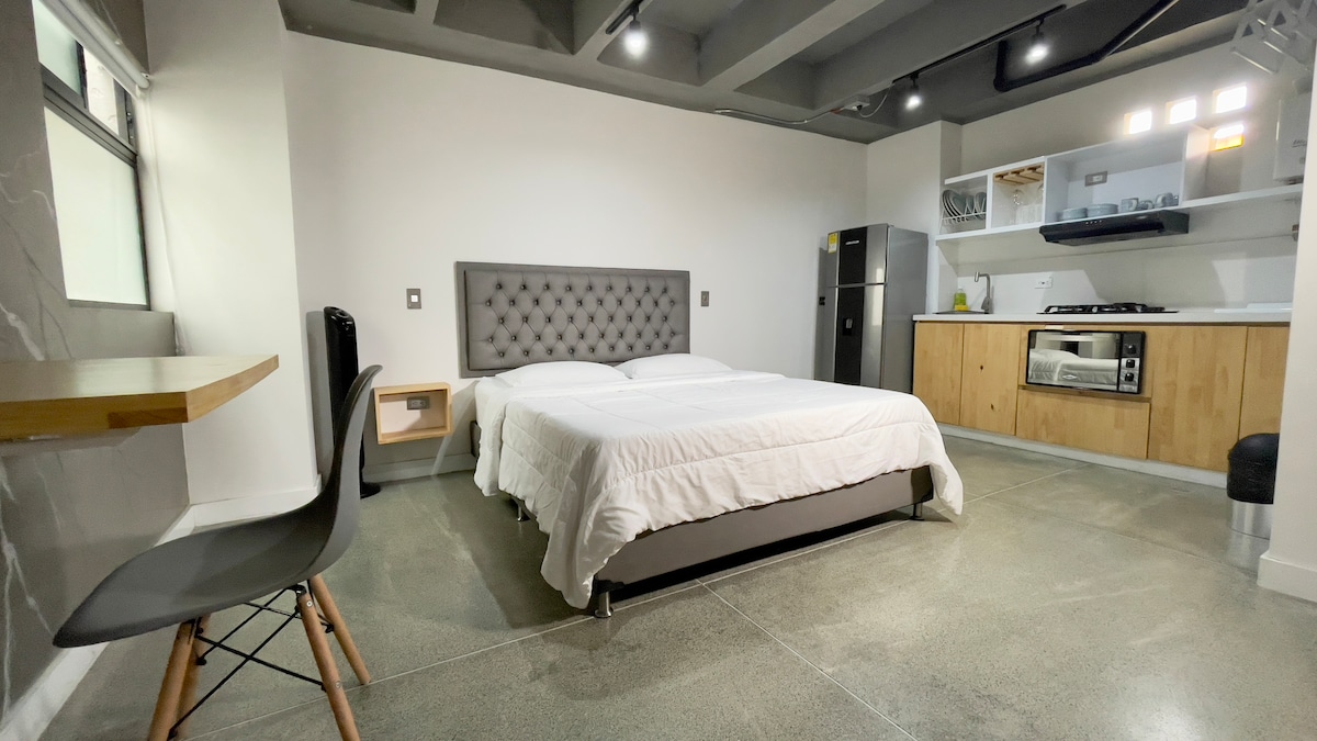 Hãy đến ở trong căn gác đô thị của chúng tôi, nơi sự thanh lịch công nghiệp kết hợp với sự thoải mái hiện đại ngay trung tâm cuộc sống thành phố sôi động của Medellín. Tận hưởng bầu không khí phong cách với trần nhà cao, tường gạch lộ thiên và các chi tiết công nghiệp pha trộn lịch sử với thiết kế đương đại. Bạn sẽ được bao quanh bởi các nhà hàng, cửa hàng và địa điểm giải trí tốt nhất — tất cả trong một tòa nhà cung cấp các tiện nghi hàng đầu và an ninh 24/7.