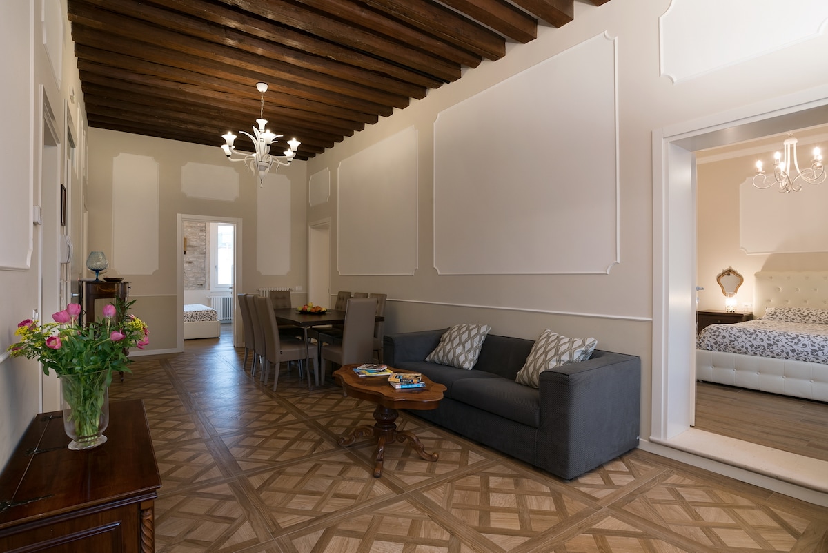Căn hộ tầng lửng mini ở tầng 5 và tầng cao nhất (có thang máy) của một tòa nhà lịch sử tại một vị trí độc đáo và riêng biệt, có sân thượng rộng nhìn toàn cảnh thành phố, được trang bị bàn ấm cúng cho 2 người, ghế nằm tắm nắng và vòi sen nước nóng ngoài trời, tất cả dành riêng cho bạn để có một kỳ nghỉ khó quên tại trung tâm lịch sử của Venice 🥰