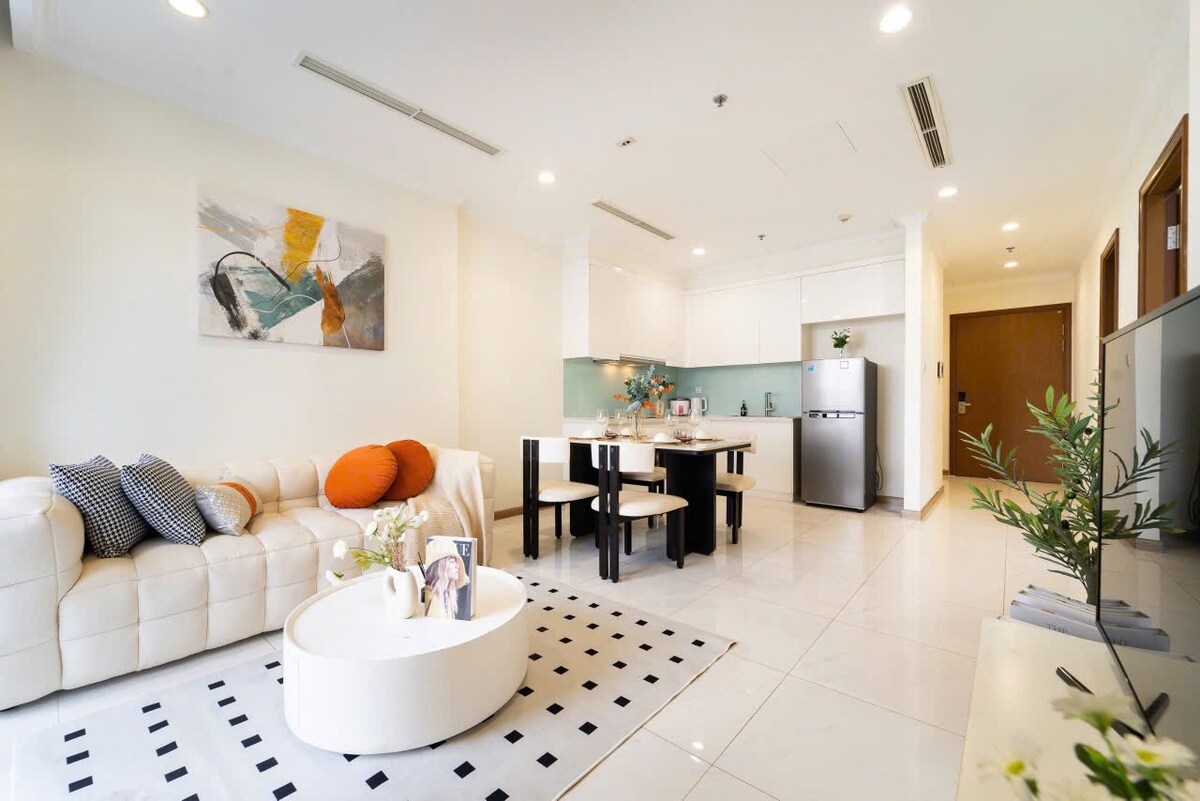 +Căn hộ trong tòa nhà Landmark2, cạnh Landmark81. +Đây là Officetel (Văn phòng+Khách sạn) Căn hộ cho phép thực hiện Airbnb. +Phòng ngủ có nệm Luxury Memory-Foam, King Size-1m8x2m, hoàn hảo và thoải mái, tốt cho vấn đề đau lưng. +Có máy giặt & máy sấy +Vệ sinh, sạch sẽ là ưu tiên hàng đầu của tôi. Khăn trải giường và khăn tắm luôn được gia hạn khi đến +Có dịch vụ vệ sinh miễn phí cho thời gian lưu trú dài hạn