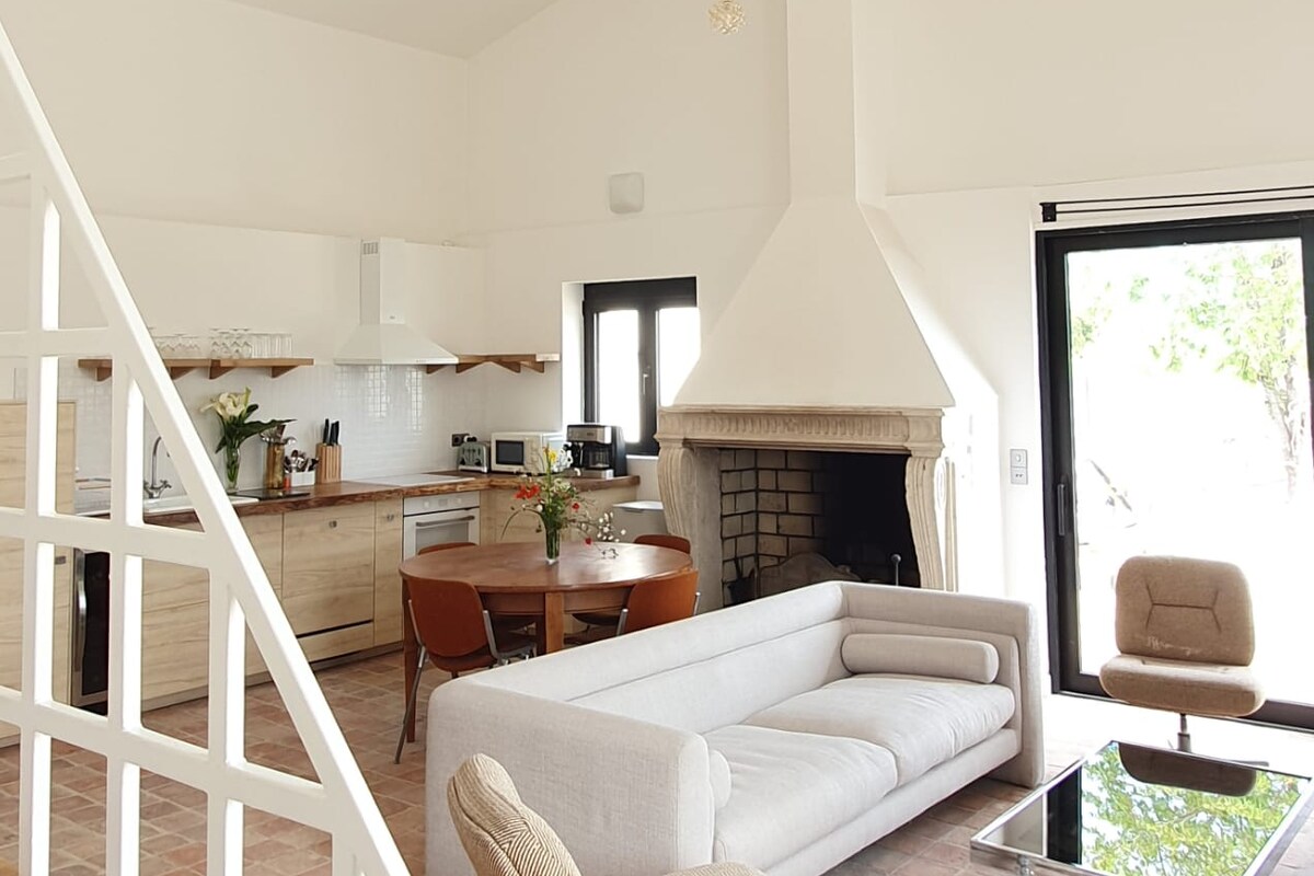 Được cải tạo hoàn toàn vào năm 2023, nhà nghỉ thôn dã của chúng tôi là một cánh nằm ở phần mở rộng của nơi cư trú chính của chúng tôi ở Plain pied, bạn sẽ đánh giá cao khối lượng của nó với phòng ngủ lớn, phòng khách với trần nhà thờ, bếp củi và nhà bếp được trang bị hiện đại cũng như đi thẳng ra bên ngoài để ăn trưa trên sân thượng và tận hưởng tiếng chim hót. Ngoài ra, bạn có thể đi bộ đến tất cả các cửa hàng trong làng. Sưởi bằng củi vào mùa đông.