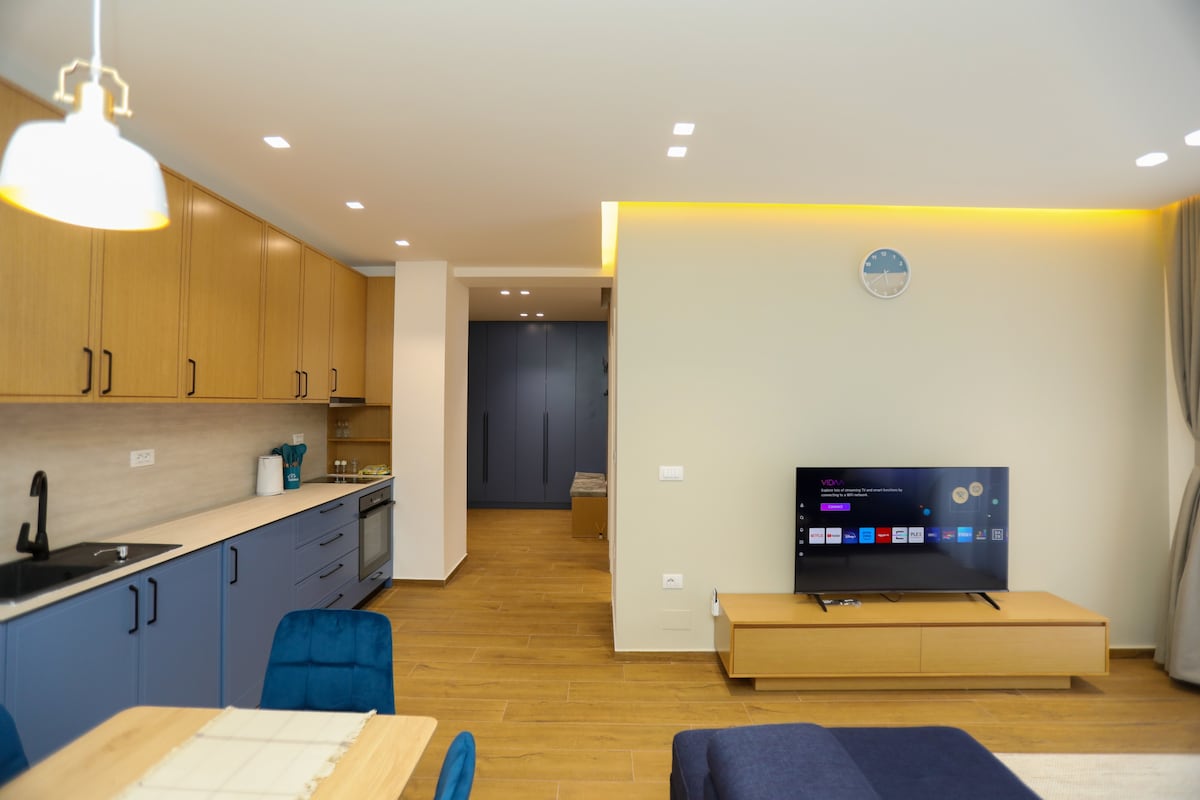 Discover La Dimora Azzurra, a charming 1-bedroom apartment nestled in the beautiful city of Vlorë, perfect for couples, small families, and business travellers seeking a comfortable and well-equipped urban retreat.<br><br>This 65 square metre apartment offers a cosy and modern living space with thoughtfully designed accommodations.