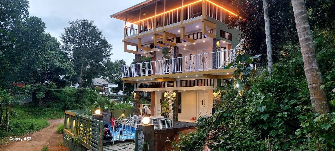 Located in the heart of Sultan Bathery with 3 floors, a pool, dining space, complimentary breakfast, barbeque & campfire. Flexible stay options for groups of all sizes. 3 ways to book your stay here: 1. Spacious 2BH flat with 1 AC & 1 Non-AC bedroom, hall, dining, and shared pool—sleeps 8. 2. Book an entire floor (2 flats ) for up to 16+ guests—private pool possible (subject to availability). 3. Book the full property (6 flats) for up to 48 guests with exclusive use and complete privacy.