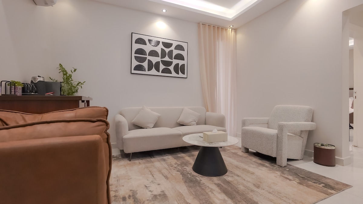 Một căn hộ sang trọng bên cạnh Riyadh Season Boulevard, tòa nhà Hometel Residence Với lối vào riêng bên ngoài và tự nhập cảnh, bao gồm - Khu vực sinh hoạt với bàn bi-a, cây trồng tự nhiên thẩm mỹ, màn hình TV thông minh, phòng ăn, bếp và phòng tắm cho khách, phiên ngoài trời - Bếp (lò nướng/ tủ lạnh/ lò vi sóng/máy pha cà phê/ ấm đun nước/ấm đun nước/máy giặt/dụng cụ nhà bếp) - Phòng chính có phòng tắm riêng - Hai phòng ngủ giường đơn, có phòng tắm chung - Đại lộ chỉ cách 5 phút đi bộ
