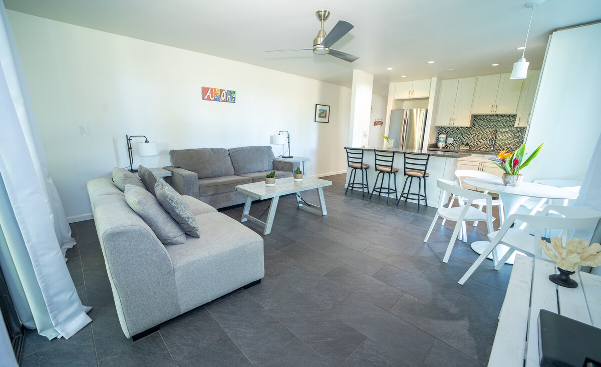 Khung cảnh hoàng hôn mê hoặc từ căn hộ phía trước bãi biển đầy cát này. Không có gì ngăn cách bạn với làn nước màu ngọc lam lấp lánh ngoài những dấu chân trên cát. Ban công có chiều cao lý tưởng để ngắm rùa. Từ tháng 11 đến tháng 4, bạn có thể phát hiện ra một con cá voi. Vùng đất sôi động này đầy những bất ngờ. Ngay cả cá heo cũng quay cuồng ngay bây giờ và sau đó. Thoát khỏi đám đông Waikiki để trải nghiệm lối sống Hawaii thực sự. Lặn với ống thở, boogie board hoặc lướt sóng ngay ngoài cửa nhà bạn. Thức dậy theo nhịp điệu của đại dương có thể thay đổi cuộc sống của bạn mãi mãi.