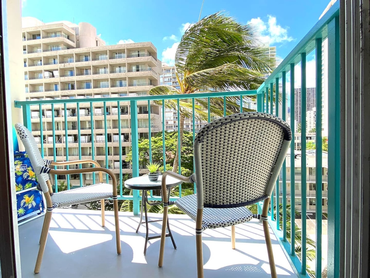 Newley đã được sửa sang lại ! Khách sạn căn hộ đẹp ở trung tâm Waikiki với chỗ đỗ xe miễn phí tại một tòa nhà riêng biệt. Cách bãi biển 7 phút. Studio đầy đủ tiện nghi với giường cỡ King, giường sofa, TV thông minh, bếp từ, máy pha cà phê Keurig, máy nướng bánh mì, lò vi sóng, bàn là và cầu là, dầu gội đầu, dầu xả, sữa tắm, bộ dụng cụ cưa nhỏ gọn, máy sấy tóc, máy duỗi tóc và đồ dùng bãi biển (mặt nạ lặn, vây lặn, ván boogie, thảm bãi biển, ô bãi biển, tủ mát. Được chấp thuận hợp pháp cho thuê ngắn hạn.