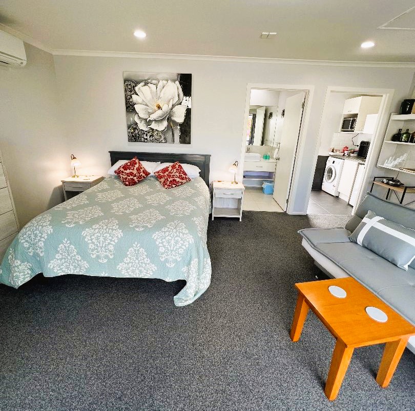 Tự chứa (gắn với phần còn lại của ngôi nhà) lối ra vào bên ngoài, phòng ngủ, nhà bếp/ sảnh chờ, phòng tắm với vòi sen và bồn tắm. Đồ dùng cho bữa sáng: trà/cà phê, v.v., trái cây hữu cơ theo mùa, bánh scones/mứt/đồ bảo quản tự làm. WIFI không giới hạn. Trong vòng 20 phút: Kerikeri, chợ, nhà máy sô cô la, sân bay, bãi biển Paihia, khu vực Hiệp ước Waitangi, hang động Stalgmite rực rỡ, Kaikohe, suối nước nóng giải nhiệt, Okaihau, rừng kauri Puketi, những ngôi nhà NZ lâu đời nhất, 8 phút lái xe đến đường mòn đi bộ.