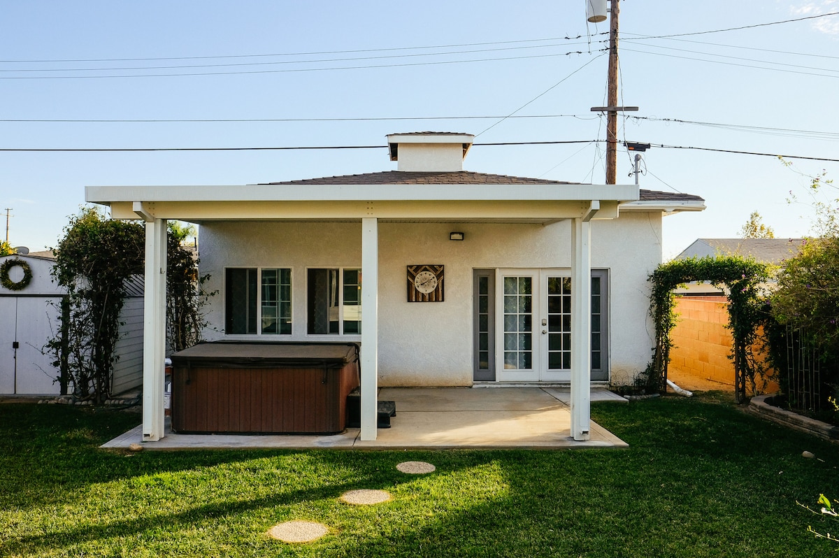 Enjoy a modern and private getaway near the San Gabriel mountains. This relaxing tiny home shares the backyard with my main house. The yard features a large turtle & koi pond. Key amenities include keyless entry, mini-split A/C, 50-inch 4K TV, strong mesh Wi-Fi, Chemex coffee, 240v hot tub, queen sofa bed, 2 e-bike rentals, an outdoor grill, washer/dryer, and level 2 EV charging.