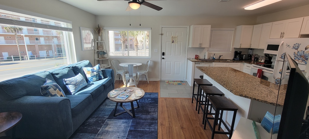 Follow the sun to this beautifully renovated oceanfront studio—where white sand, warm breezes, and crystal blue waters await. • Free beach chairs and umbrella included with your stay (March 15 – October 31). • Relax on your private balcony overlooking one of the most breathtaking beaches in the world. • Centrally located – park your car and forget about it! Walk to top-rated restaurants, Pier Park, and many local favorites.