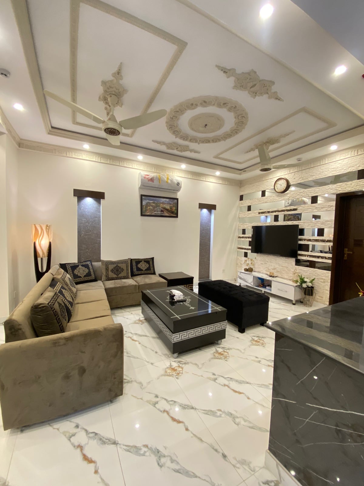Enjoy a stylish experience at this centrally-located place. ❄️ AC - 2× (extra charges for second AC) 🖥️ TV (Android) 🍿Free Netflix (Optional) 📶 Fast Wi-fi 🧑🍳 Kitchen - Microwave oven, cutlery, Sauce pan, Fry pan, Electric kettle. 🚿 Geyser 🚗 Free Parking 🛗 Lift 🔐 Secure environment 📱 24/7 help 🛕 Basil Bistro Restaurant 🛕 Yasir broast Restaurant 🛕 YI FANG Chinese & Thai Restaurant 🛕 LalQila Restraunt 🛕 Mojoz Restraunt 🛕 Novu Restaurant 🛕 Muhammadi Nihari 🛕 Ghani Shinwari