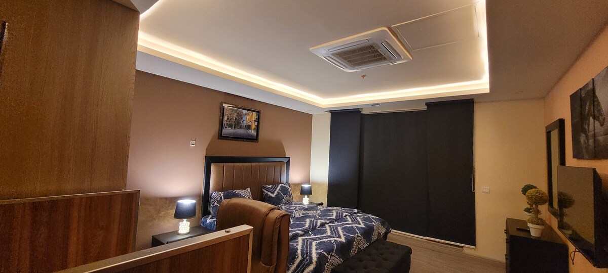 Chủ nhà: The Royal Escape Pakistan Một kỳ nghỉ lãng mạn ngay trung tâm Lahore! Căn penthouse 1 phòng ngủ thanh lịch, có điều hòa không khí này trên đường Mall Road chỉ cách Badshahi Masjid, Shahi Qila & Anarkali vài phút. Tận hưởng giường cỡ king, TV thông minh, ánh sáng ấm cúng, bếp đầy đủ tiện nghi và WiFi miễn phí. Lý tưởng cho các cặp vợ chồng, du khách đi một mình hoặc gia đình nhỏ - chỉ cách sân bay 25 phút!