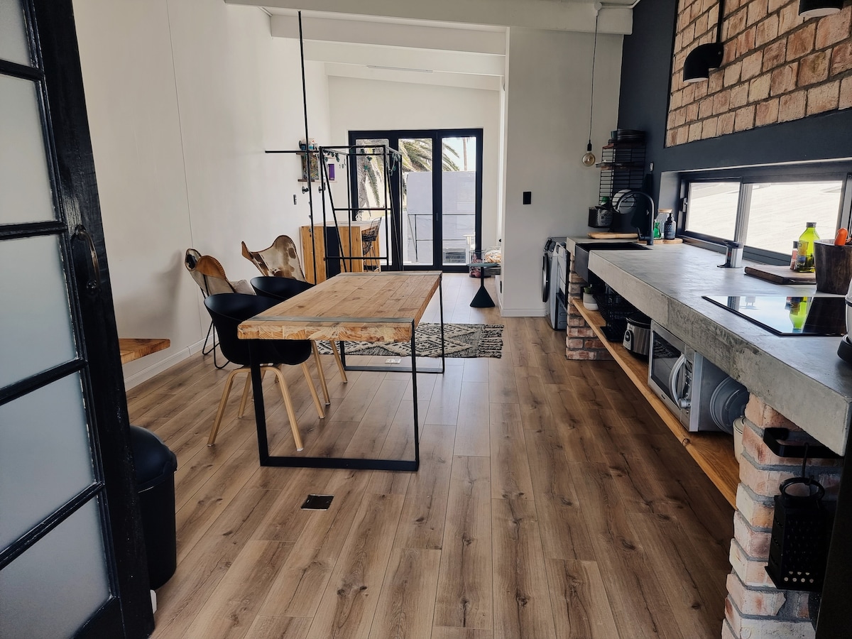 Enjoy this industrial style loft apartment within walking distance from the beach, town and sport centre. With a fibre internet connection, double garage (high enough for your rooftop tent) and big braai (outside bbq), you're sure to have an unforgettable stay!