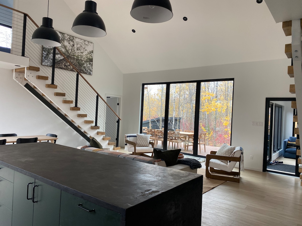 We welcome you to experience the beautiful Albert Beach while staying at our modern Scandinavian inspired getaway! Just a 5 minute walk to the soft sandy beach. A 2 minute walk to Saffies General store that’s open year round. In the summer enjoy Le Gouter restaurant that offers specialty pizzas, ice cream and more for pickup. Relax in the sauna and enjoy an outdoor shower in nature or bike/walk down the Trans Canada Victoria Beach trail.