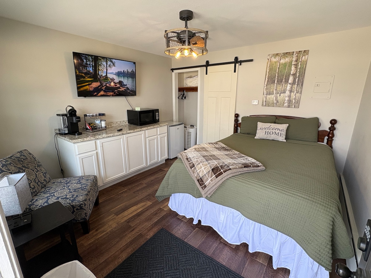 Welcome to Lodging at Lake Aire in the charming community of Waseca Mn. This is a 1 bed 1 bath end unit in our extended stay Motel. The 3 acre property and views of clear lake are sure to please. This unit has a functional kitchen with all new utensils, pots, pans etc. This unit features a new queen sized plush soft bed with all new pillows and linens. The private bathroom has a stand up tile shower, soaps & all new towels. Enjoy your morning coffee on the semi private backyard concrete patio