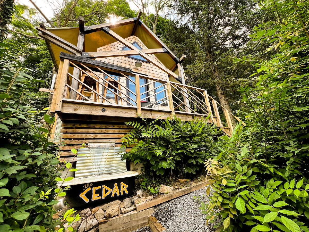 Một phần “lều”, một phần “cabin”, cấu trúc lai một phòng ngủ đáng kinh ngạc này sẽ cung cấp cho bạn tất cả những thứ xa xỉ bạn cần, cho phép bạn vẫn cảm thấy hợp lý khi nói với bạn bè rằng bạn đã “cắm trại” ở WV. Không sao đâu, chúng tôi sẽ không nói với ai đâu. Camp Potomac Peak gần đây (tháng 11 năm 2025) đã được WV Living Magazine vinh danh là nơi ở tốt nhất ở Eastern Panhandle.