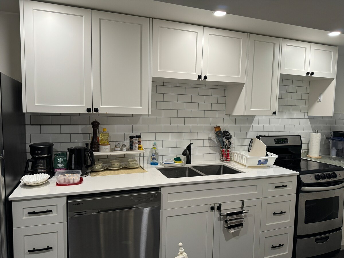 This apartment has everything you need for your KW stay! Located steps from the Grand River and Joe Thompson park, there is an abundance of nature to explore while you’re in town. A central point between Kitchener and Waterloo, it’s less than a minute away from Highway 85 and a 5 minute drive to either Uptown Waterloo or downtown kitchener. Grand river hospital, University of Waterloo and Laurier University are all also less than a 10 minute drive. An ideal base to explore what KW has to offer!