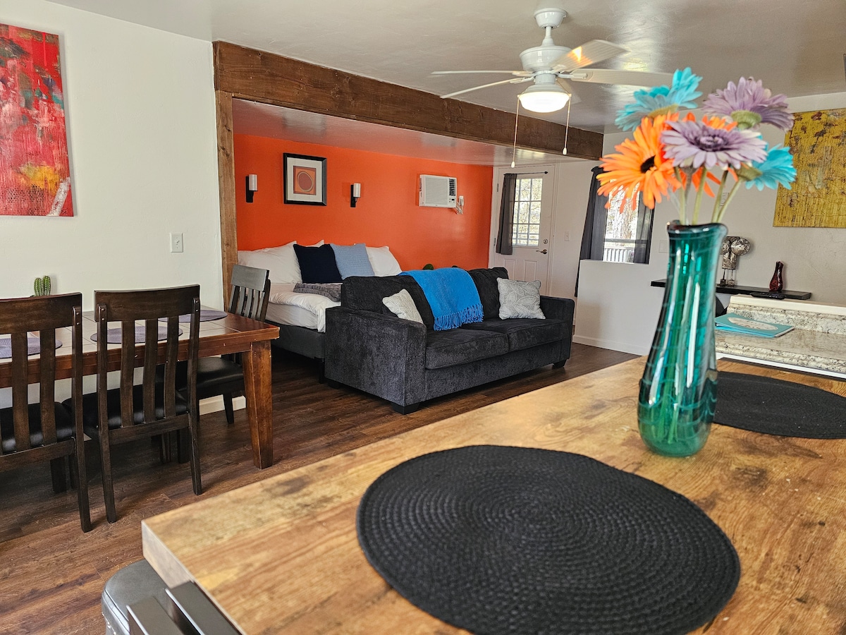 Sunrise Suite nằm cách trung tâm thành phố Prescott và Whiskey Row nổi tiếng 3 dặm. Gần khu mua sắm, ăn uống, đường mòn đi bộ đường dài và hồ. Tận hưởng sự yên bình và yên tĩnh từ một boong riêng trong khi tận hưởng ánh nắng mặt trời đẹp từ Airbnb độc đáo của chúng tôi. Phòng riêng này, ngủ 2 người thoải mái, bao gồm, BBQ, bếp nhỏ, bàn ăn/không gian làm việc và khu vực thư giãn để đọc sách. Thêm không gian trong nhà để khóa xe đạp hoặc thuyền kayak của bạn. Đặt một tour tham quan mỏ lịch sử với Bill theo trải nghiệm Airbnb. Cuộc phiêu lưu bắt đầu từ đây!