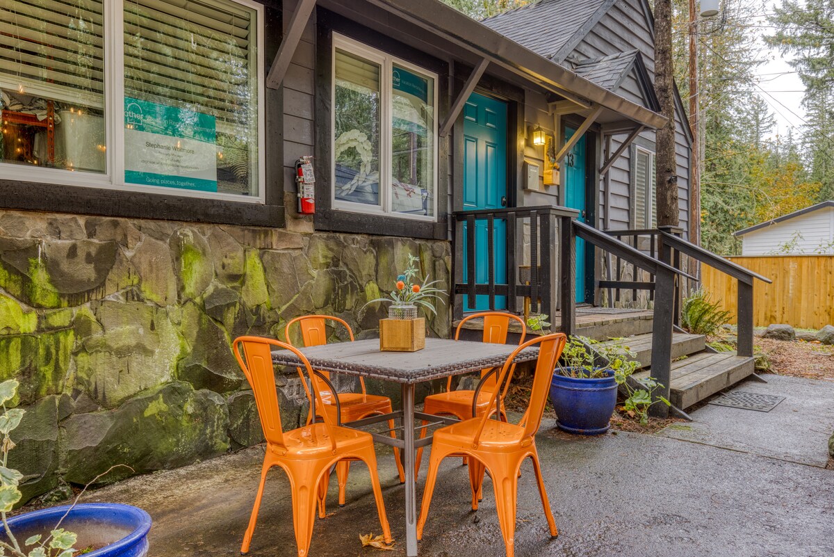 Chào mừng bạn đến với The Emerald Fern, một cabin quyến rũ nằm ngay trung tâm Rhododendron, Oregon. Nơi nghỉ dưỡng thanh bình này mang đến sự pha trộn hoàn hảo giữa nét quyến rũ mộc mạc và sự thoải mái hiện đại, khiến nơi đây trở thành một nơi nghỉ ngơi lý tưởng cho những người yêu thiên nhiên cũng như những người thích phiêu lưu. Ngôi nhà năm 1924 này có sơ đồ tầng mở và chỉ cách thực phẩm và mua sắm một đoạn đi bộ ngắn. Bên trong, bạn sẽ tìm thấy một nhà bếp được trang bị đầy đủ tiện nghi, sàn gỗ anh đào, lò sưởi gas, spa và màn hình phim cho những đêm ấm cúng trong khi vẫn giữ được sự tinh tế cổ điển của nó.