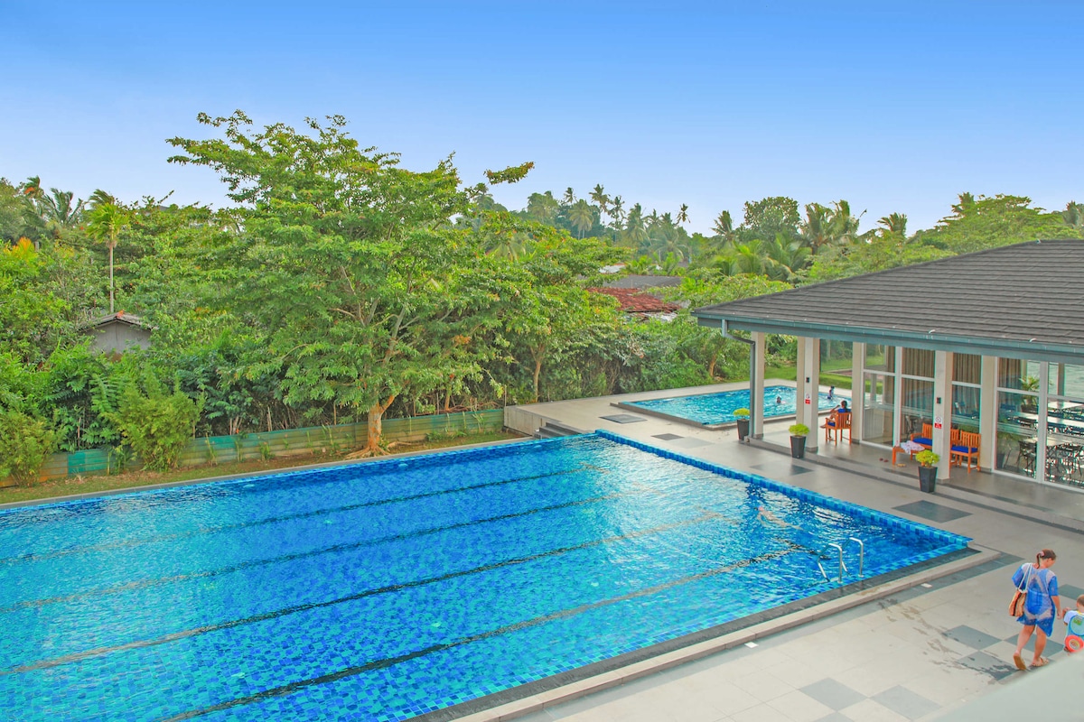 Trải nghiệm cuộc sống rộng rãi, phong cách trong căn hộ 3 phòng ngủ, 2 phòng tắm xinh đẹp này trên tầng 10 của Tháp Nam Fairway Galle uy tín. Được quản lý bởi NicStays, căn hộ hiện đại này có sức chứa tối đa 5 khách với 2 giường queen và 1 giường king đơn. Tận hưởng nhà bếp được trang bị đầy đủ tiện nghi, điều hòa không khí xuyên suốt và sử dụng các tiện nghi tuyệt vời theo phong cách nghỉ dưỡng bao gồm hồ bơi cỡ Olympic, hồ bơi trẻ em, sân tennis và bóng quần, phòng tập thể dục và khu vui chơi. Nằm gần bãi biển, các di tích lịch sử và các di tích lớn