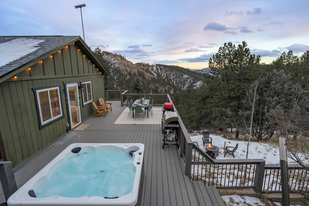 Cabin Boho-chic với tầm nhìn ra đỉnh núi + Bồn tắm nước nóng