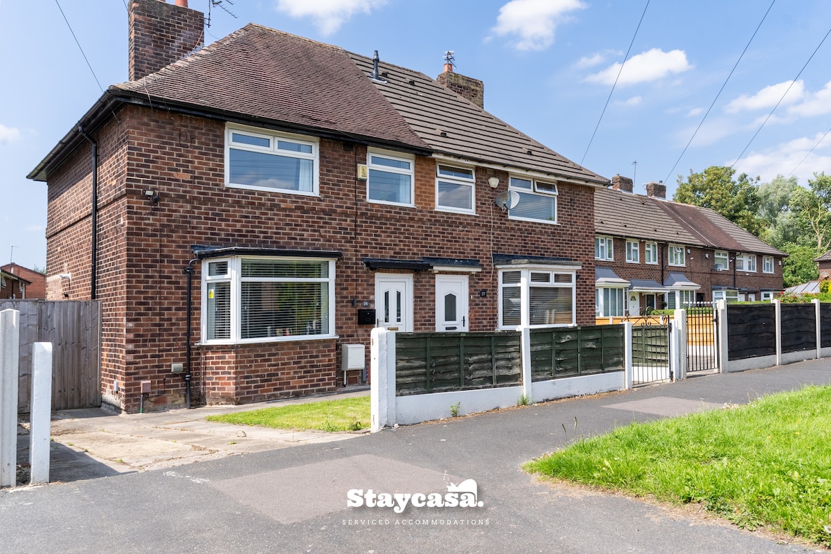 Chỗ ở đầy phong cách này hoàn hảo để giải trí và đi công tác với bãi đỗ xe ngoài đường. Cách sân bay Manchester 1,3 dặm, gần đường cao tốc và ga tàu hỏa và xe điện Phòng khách/bếp/phòng ăn có không gian mở rộng rãi với đầy đủ tiện nghi. TV thông minh 50"kết nối với băng thông rộng siêu nhanh và tất cả các phòng đều có ổ cắm điện để sạc thiết bị của bạn