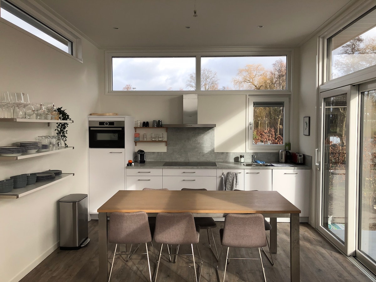 Một căn nhà gỗ độc lập ở một vị trí yên tĩnh. Từ bungalow, bạn có thể đạp xe đến bãi biển Bergen aan zee, làng nghệ thuật Bergen hoặc thành phố Alkmaar. Trước nhà gỗ có một khu vườn xinh xắn với hiên nhà, nơi bạn có thể ngồi dưới ánh nắng mặt trời vào mùa hè. Bên trong có phòng tắm rộng rãi, bếp đầy đủ tiện nghi, sưởi ấm sàn và điều hòa không khí. Tất cả mọi người đều được chào đón, dù trẻ hay già! Nhưng lưu ý: nhà không dành cho các bữa tiệc, âm nhạc lớn, v.v. kết nối rất tốt với A9