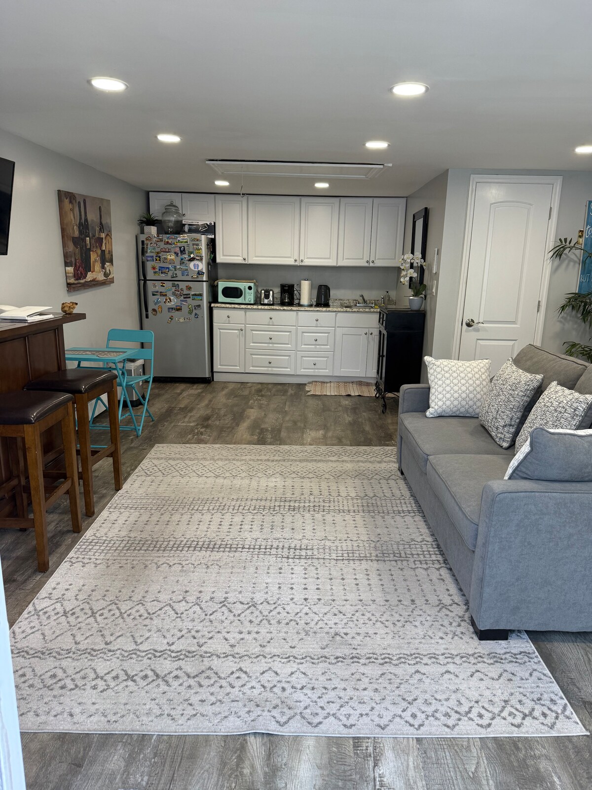 Sự ấm cúng của nó sẽ mang lại cho bạn cảm giác như ở nhà ngay khi bước vào. Tầng trệt dễ thương 280 ft vuông Tiny Guest Suite này được trang bị đầy đủ tiện nghi và được trang trí đẹp mắt - nó đi kèm với bất cứ điều gì bạn có thể tưởng tượng. Nó bao gồm 1 phòng ngủ 1 phòng tắm & khu vực nhà bếp/phòng ăn/phòng khách Kích thước phòng: Phòng ngủ: 10ft x 7 1/2ft Khu vực DR nhà bếp LR: 19ft x 10ft Phòng tắm: 40" x 80" Với khoảng cách từ mọi thứ - Nó hoàn hảo cho những khách có kế hoạch đi lại đến thành phố bằng tàu hỏa hoặc di chuyển xung quanh bằng Uber.