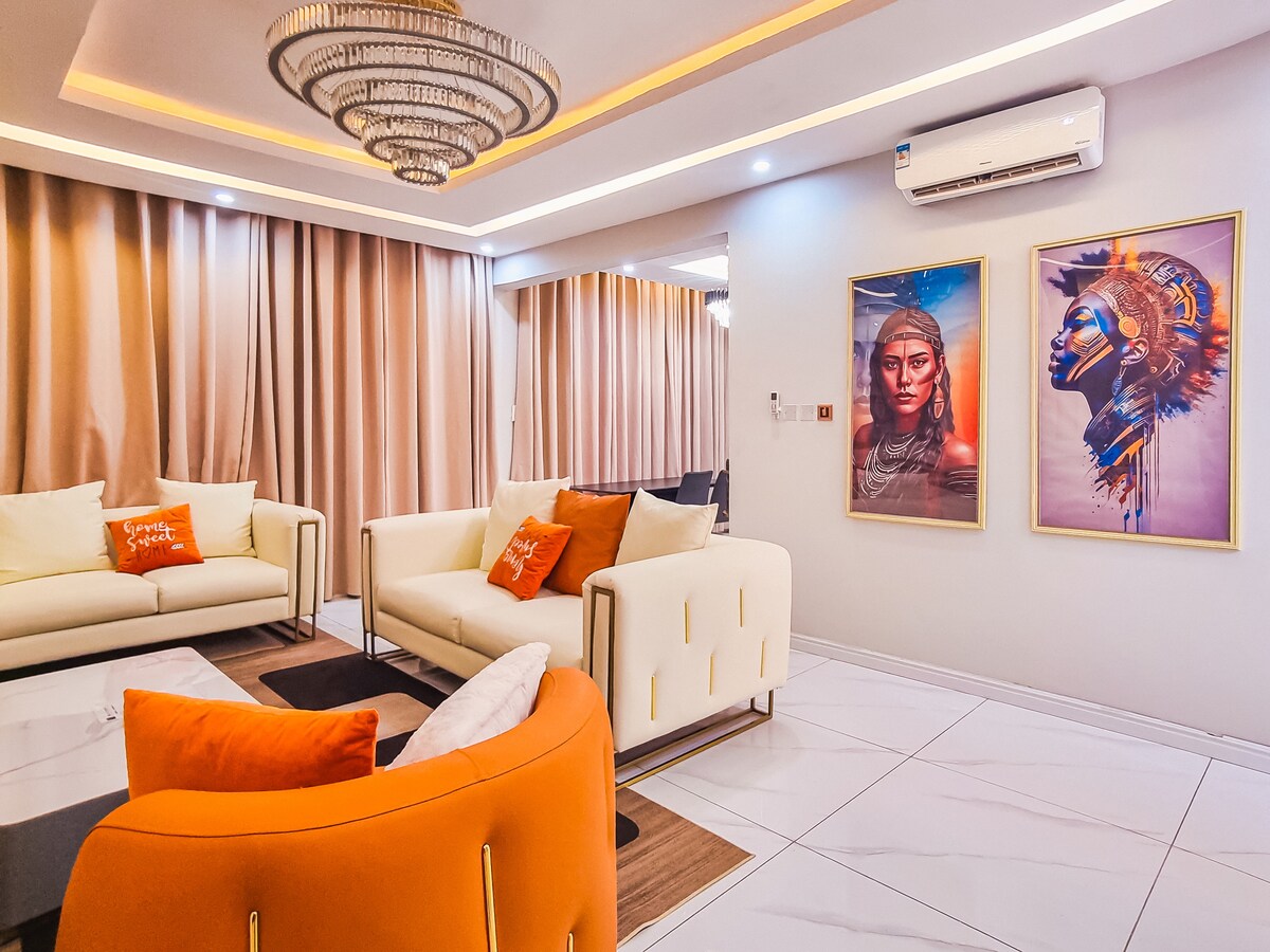 This luxury home is styled with care and is your home away from home. It is serviced with love to make your stay an absolute pleasure. It provides a stylish, modern apartment tailored to suit every guest purpose. -24hrs electricity, Free Wi-Fi after 12 midnight, a comfortable living room, fully furnished and bedrooms all rooms en-suit and furnished. Bathroom has brand new finishing with stand-up shower. Kitchen is fully equipped state of the art fittings with breakfast available upon request.