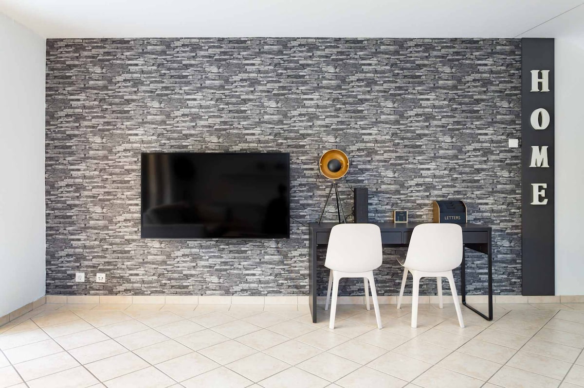 Ốc đảo 🌿 chăm sóc sức khỏe ở rìa một khu công nghiệp. Căn hộ là nơi nghỉ ngơi của các cặp đôi. Tận hưởng những giờ thư giãn trong phòng xông hơi khô của riêng bạn hoặc thư giãn trong bể sục jacuzzi quanh năm với tầm nhìn toàn cảnh hoàng hôn tuyệt đẹp. Tất cả các cửa sổ trượt đều có thể được mở hoàn toàn để tắm nắng. Thật không may, kết nối internet hiện tại vẫn chưa ổn định, trong thời gian chờ đợi có thể dẫn đến vớ tại TV. Không có điều hòa nhiệt độ, chỉ có quạt đứng