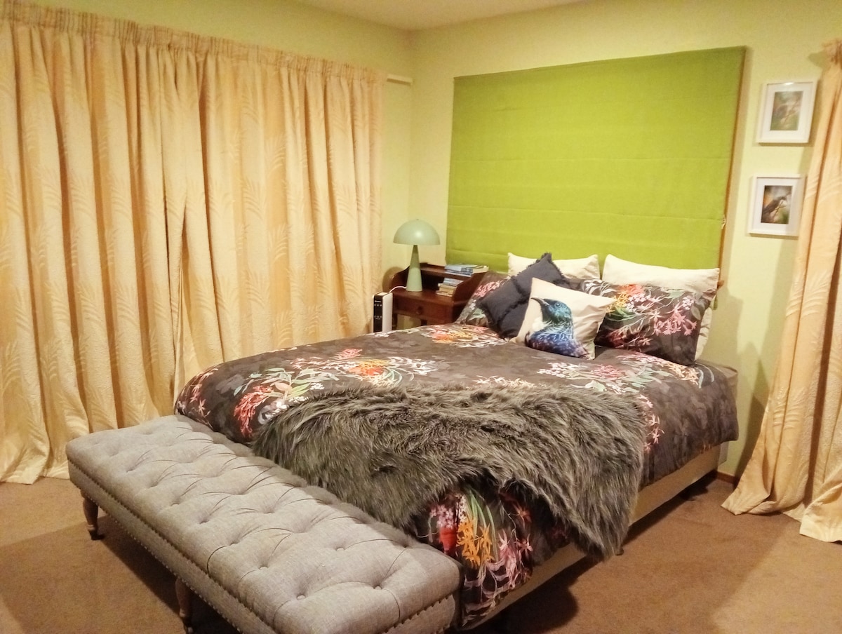 Chào mừng bạn đến với một thiên đường yên tĩnh nép mình bên bờ sông Orowaiti nhưng chỉ cách thị trấn 7 phút. Nhà khách một phòng ngủ xinh đẹp của chúng tôi trong một khung cảnh giống như công viên mang lại sự yên bình giữa những tán cây. Tận hưởng vẻ đẹp của sông Orowaiti, giàu có về đời sống chim, với những chuyến đi bộ dọc theo bờ sông. Giường cỡ Queen ấm cúng với ga trải giường sạch sẽ mang đến một giấc ngủ tuyệt vời. Với bếp nhỏ, wifi đầy đủ tuyệt vời và đồ nội thất thoải mái, đây là ngôi nhà của bạn. Hãy đến và trải nghiệm cuộc sống trên sông cho chính bạn!